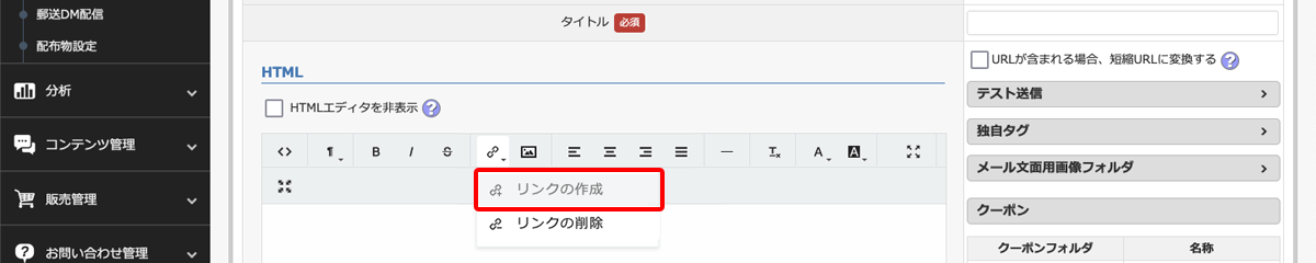 HTMLエディタの「リンクの作成」URL欄に使用することもできます。