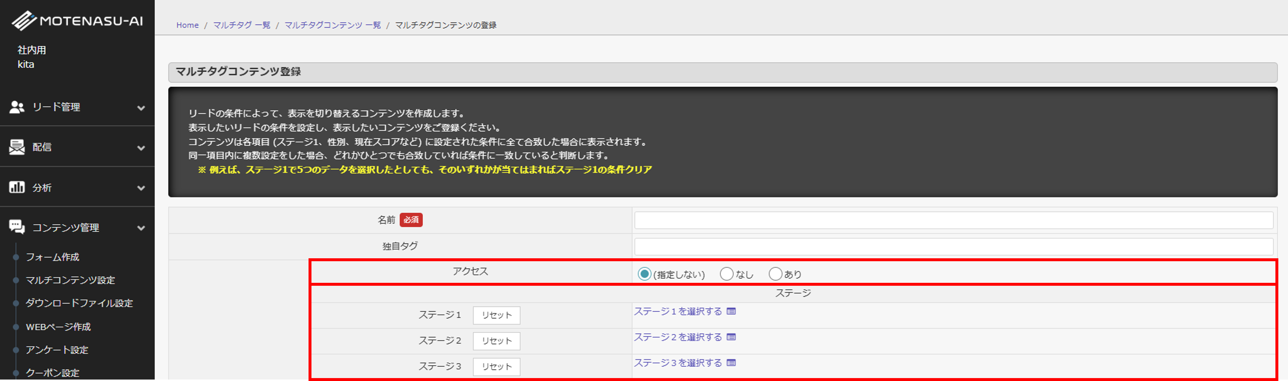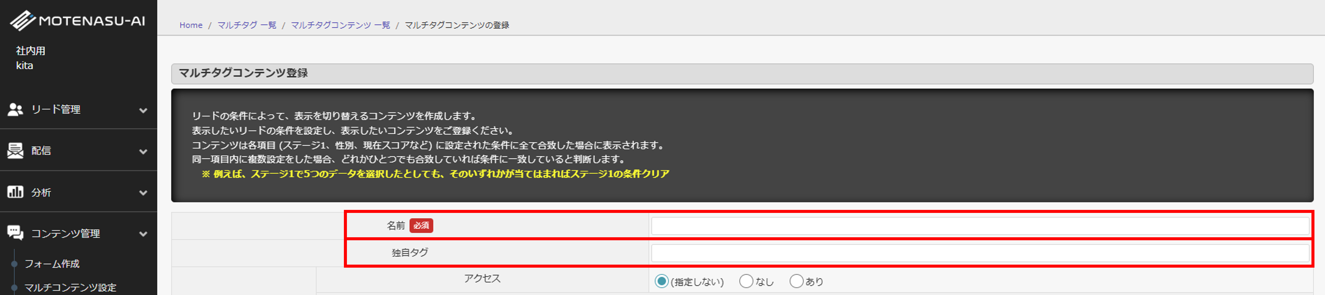 名前:マルチタグコンテンツ一覧で表示される名前です。