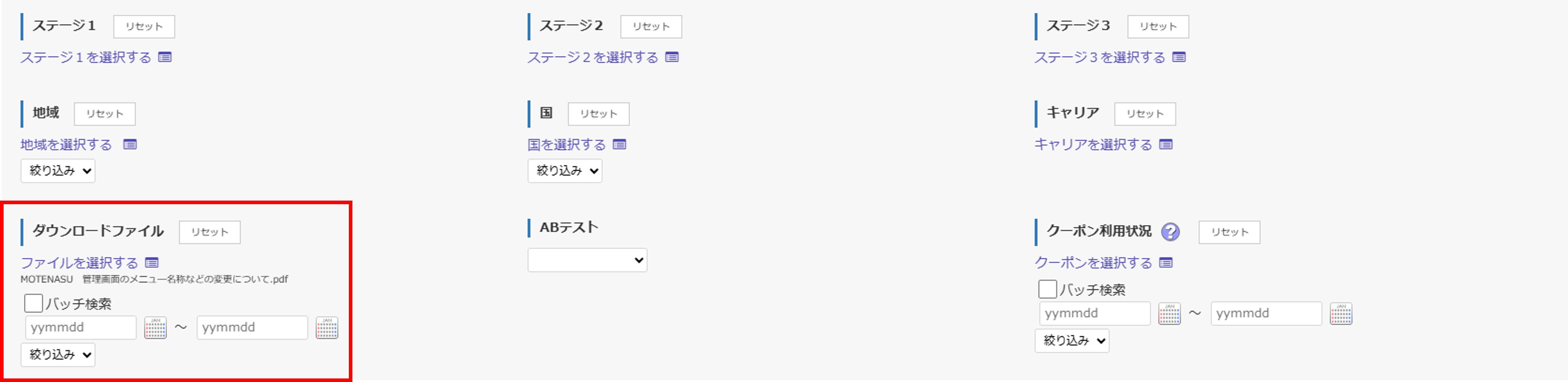 リード検索画面ではダウンロードファイルに関する条件設定が可能です。