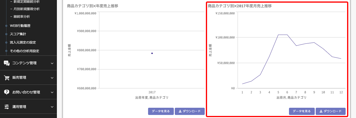 商品カテゴリごとの売り上げ状況が確認できます。
