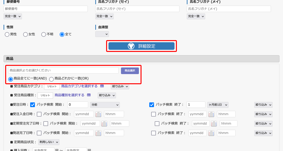例えば「基本設定」の条件に 商品A or 商品B を買っている人 を設定し、フローチャート内の分岐アクションを使って